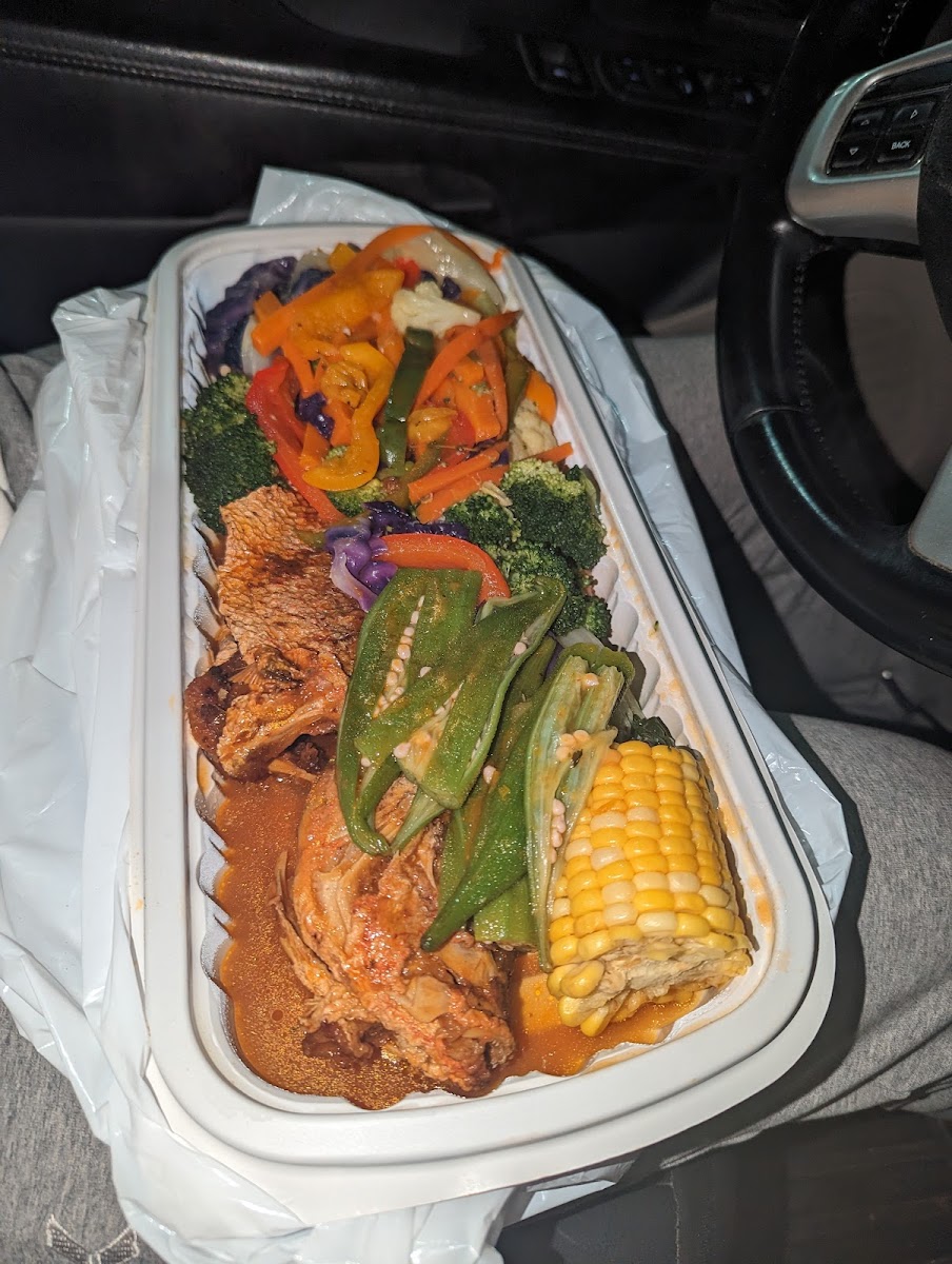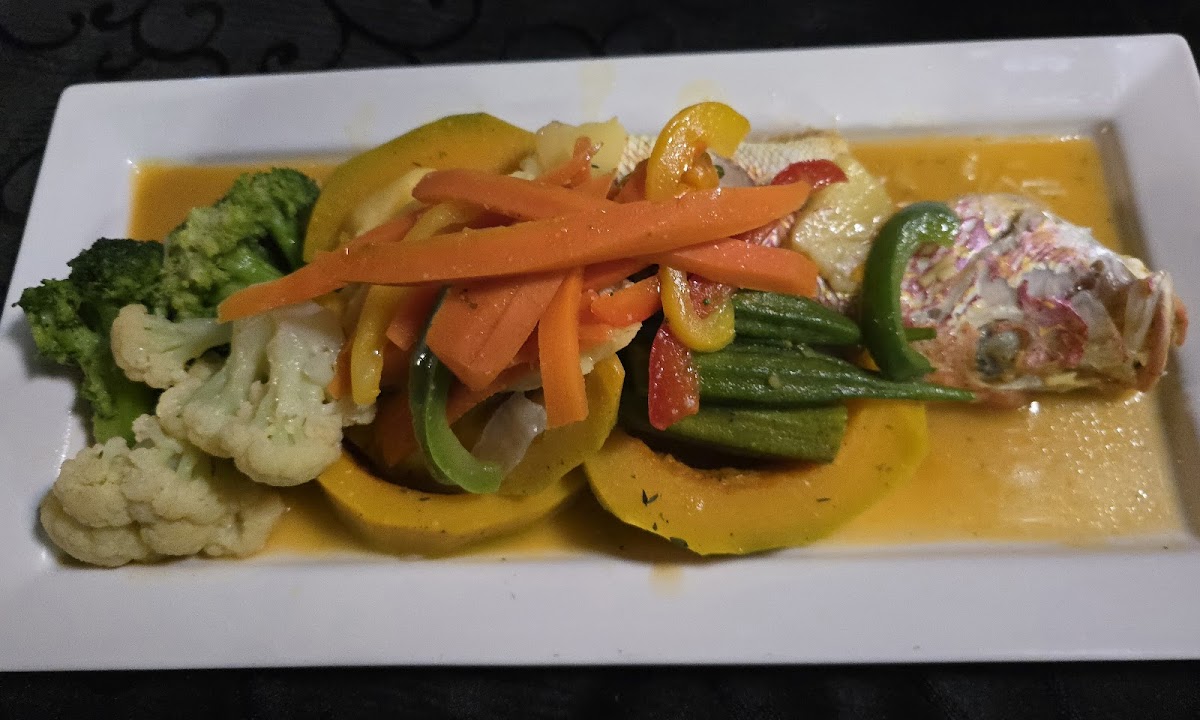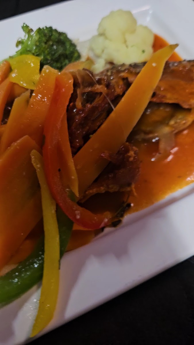 I needed fish, no rice. I got more than I imagined. We got the steamed fish and brown stewed fish, served with cauliflower, broccoli, okra, pumpkin, carrots, sweet peppers and to top it all off breadfruit and bammy. Great presentation, I was completely satisfied and most of all VERY TASTY AND UNFORGETABLE, the price was great for the superb quality. Chef and the other ladies were great. THANK YOU SO MUCH... We will be stopping by again soon!!
